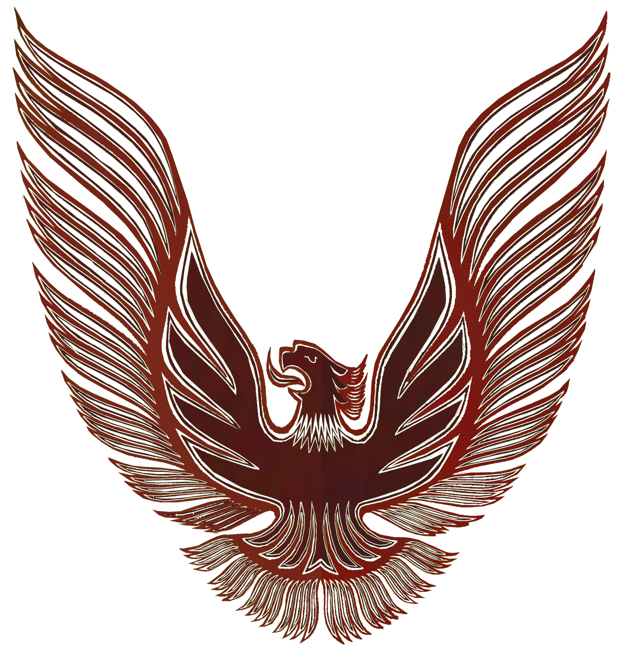 First Design Gold bird used on 1981 Turbo Trans Ams, including the black and gold special editions. This bird is lighter in color that the Second Design bird for 1981 and was replaced by the darker gold after introduction. This decal did not show well on gold metallic cars.